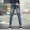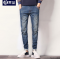 霽藍(lán) 牛仔褲男2018春季新款長褲韓版貓須小腳褲潮流修身男褲