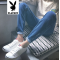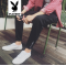 花花公子韓版褲子男潮原宿風(fēng)bf百搭青少年牛仔褲加大刺繡學(xué)生修身小腳褲