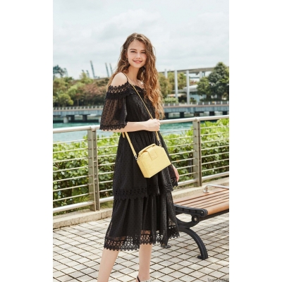 Vero Moda2018春季新款吊帶蕾絲中長(zhǎng)款連衣裙|31816Z503 吊帶,蕾絲,雙層底擺,高腰