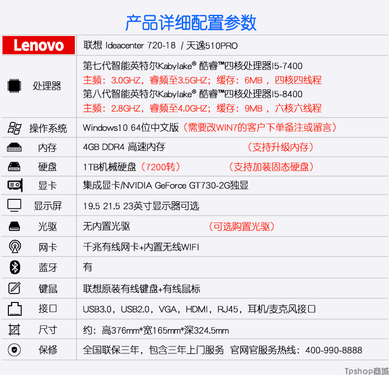 商品名稱:聯(lián)想電腦臺(tái)式機(jī)X315/510Pro/T4900V六核I5-8500 8G1T 2G主機(jī)整機(jī)