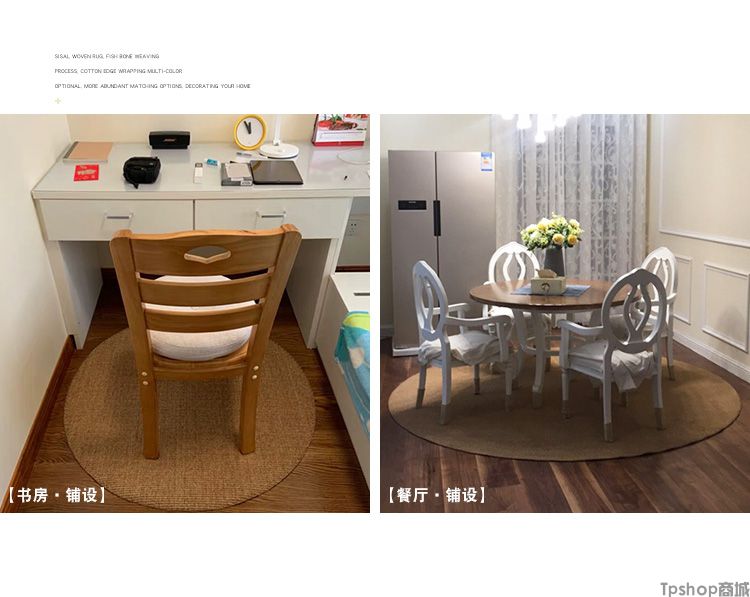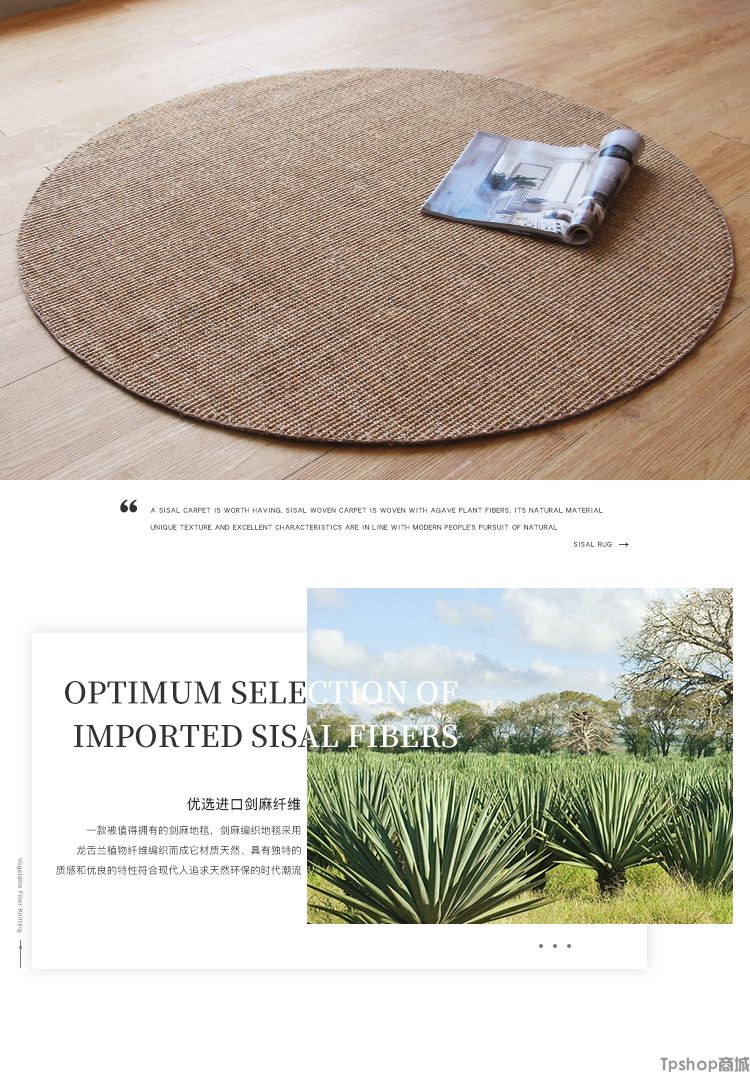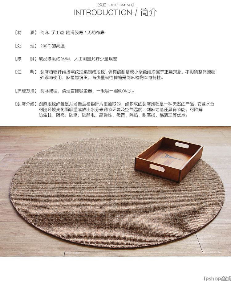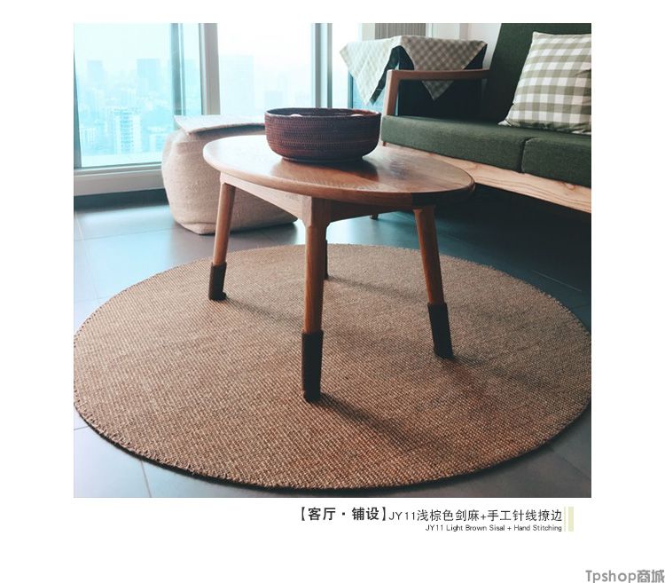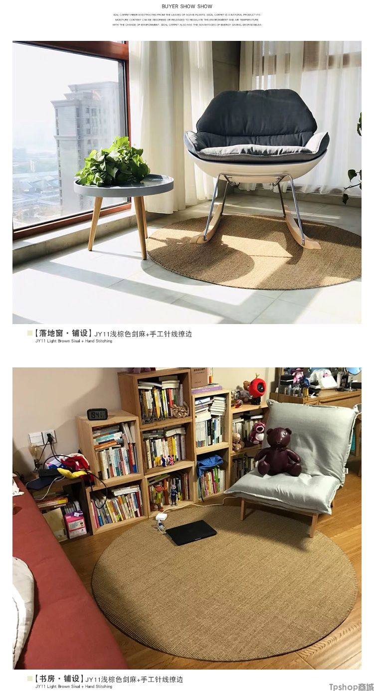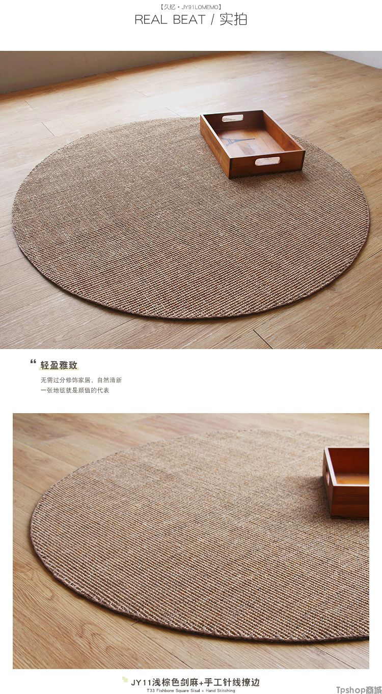 商品名稱:定制 久憶手工縫邊圓形劍麻地毯簡約書房客廳茶幾餐桌麻編轉椅地墊定制