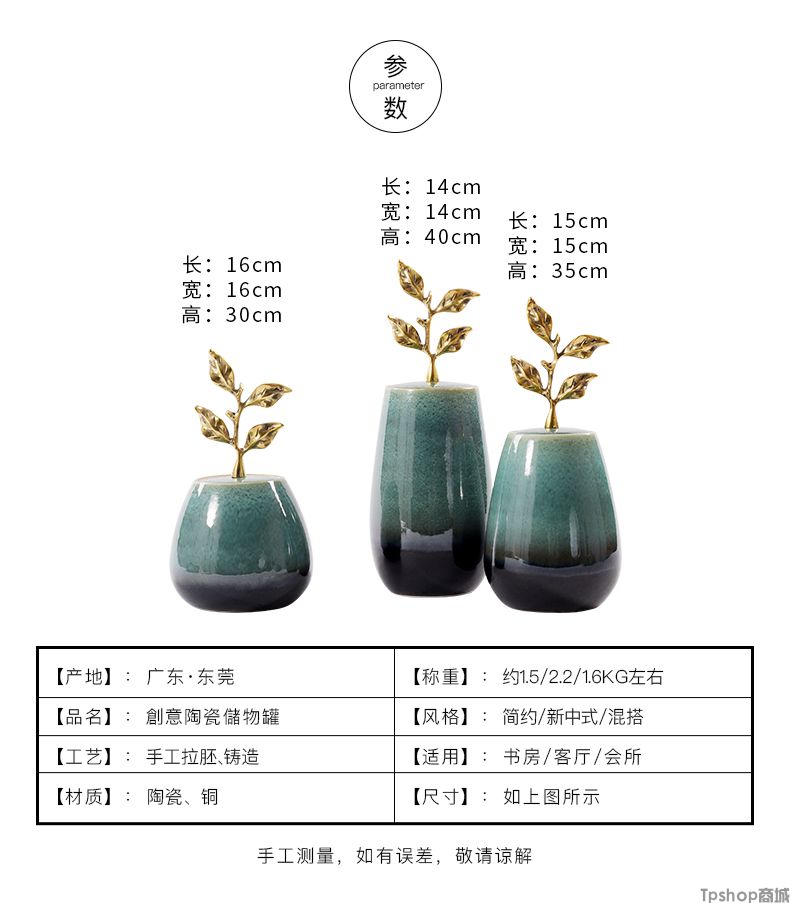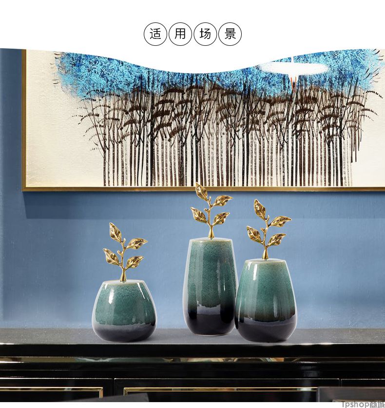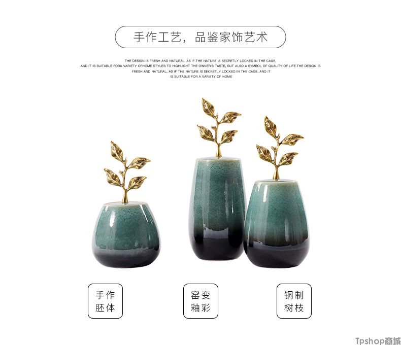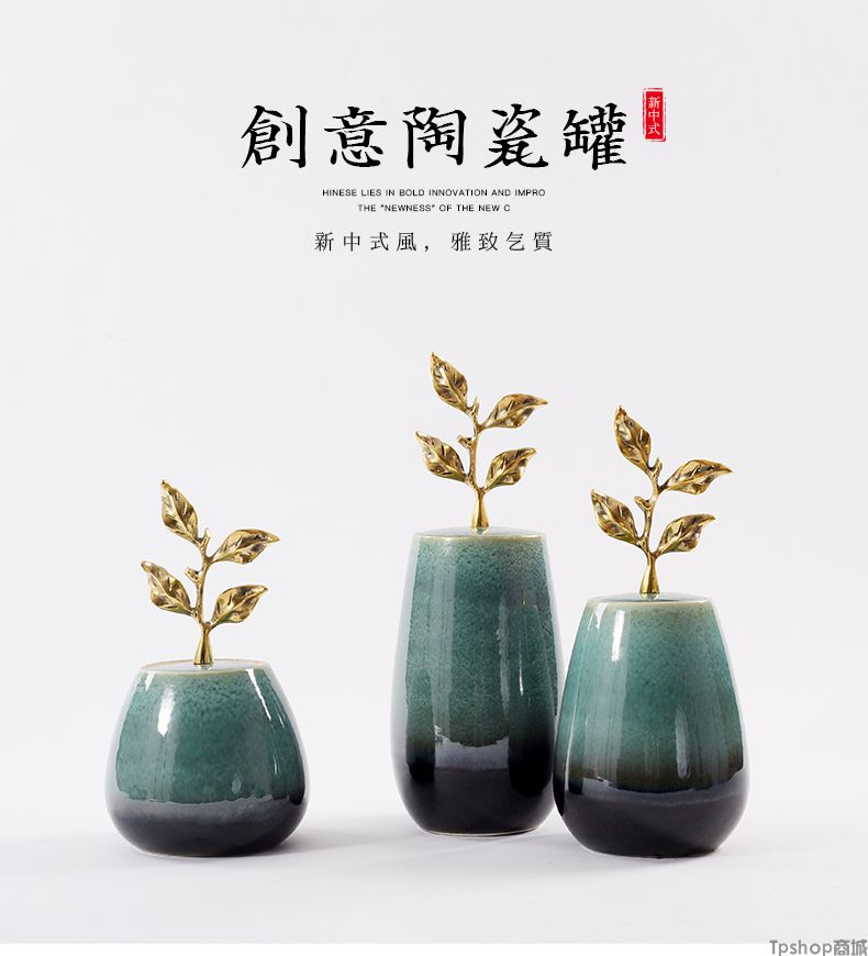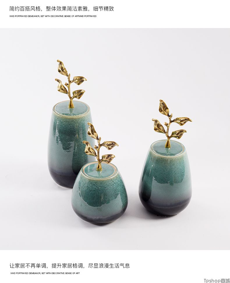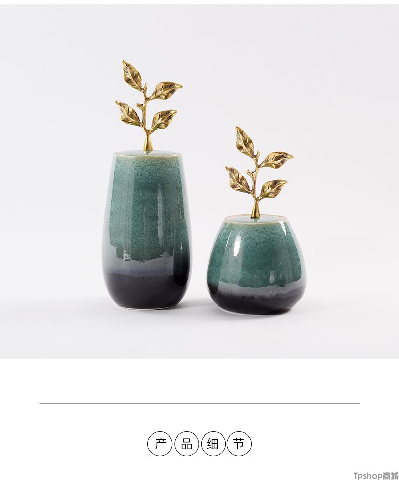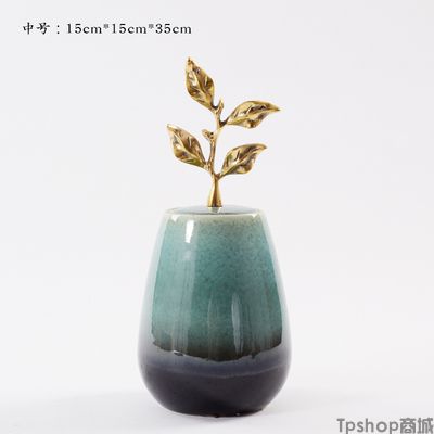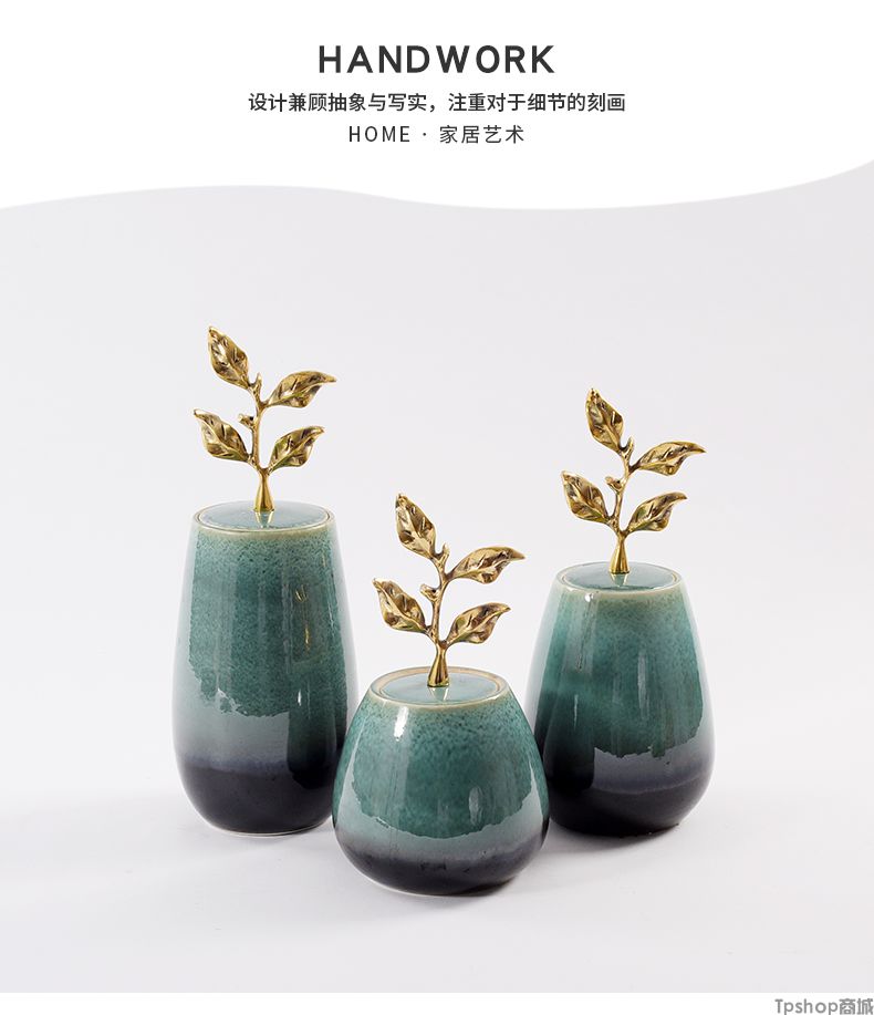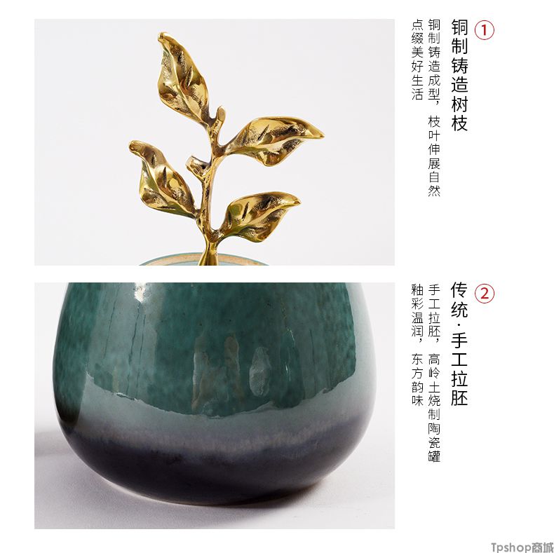 商品名稱:新中式陶瓷擺件創(chuàng)意銅制樹葉把手現(xiàn)代家居飾品樣板房間電視柜擺設(shè)