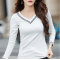 羋兒2018新款春季女裝百搭修身顯瘦純棉v領長袖t恤女百搭打底衫ME831