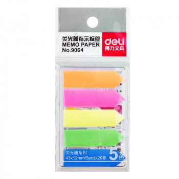 首頁(yè) > 辦公用品 > 本冊(cè)/便簽 > 便簽 > 得力(deli)9064 100張5色熒光膜指示標(biāo)簽貼 43*12mm箭頭款分類(lèi)索引便利貼記事貼