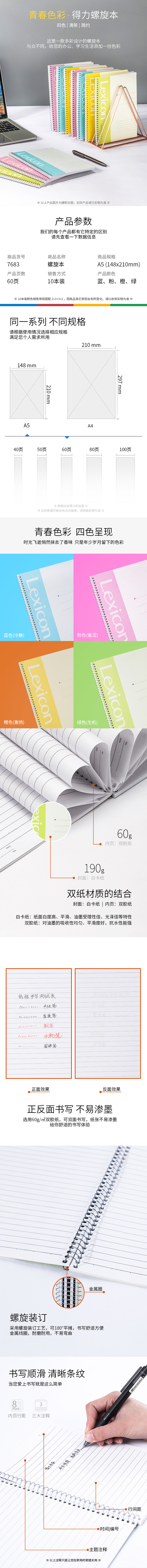 得力(deli) 7683 10本A5/60頁螺旋裝訂本軟抄本記事本筆記本子