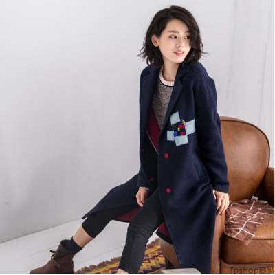 商品名稱:茵曼毛呢大衣女簡約貼布繡花中長款毛呢外套大衣【18643VP21274】